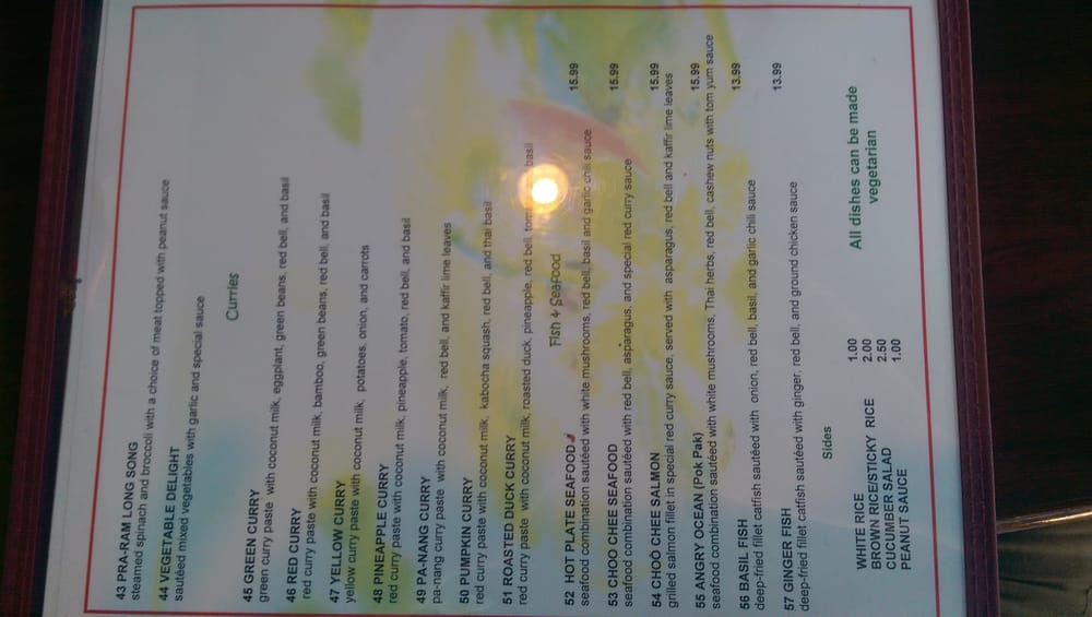 - Main Dishes: The vibrant curries—red, yellow, and green—are a must-try, renowned for their depth of flavor. Many guests rave about the Pad See Ew and the flavorful green curry.