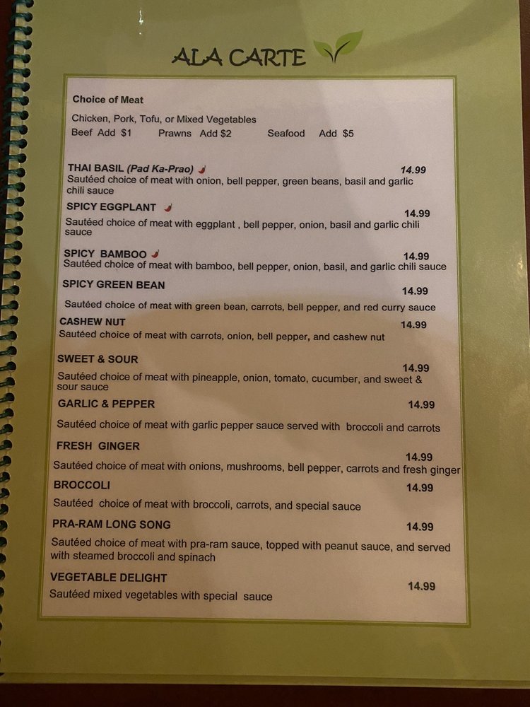 Sautéed choice of meat, with onion, bell pepper, bamboo shoot, basil and garlic chili sauce.
